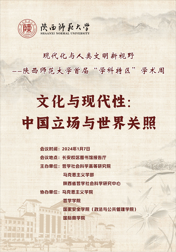 本次会议是现代化与人类文明新视野--免费a片 首届“学科特区”学术周活动之一,由哲学社会科学高等研究院、免费a片 、陕西省哲学社会科学研究中心主办,马克思主义学院、哲学学院、国家安全学院(政法与公共管理学院)、国际商学院协办。